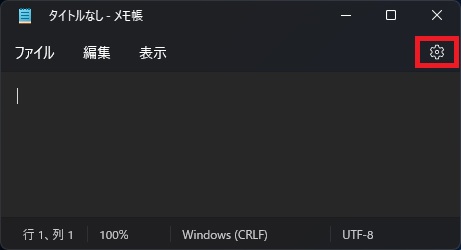 ※新しいメモ帳の確認方法は、メモ帳画面の右上の「×」アイコン(閉じる)の下に「歯車」アイコン(設定)の表示があるかどうかで判別できます。
